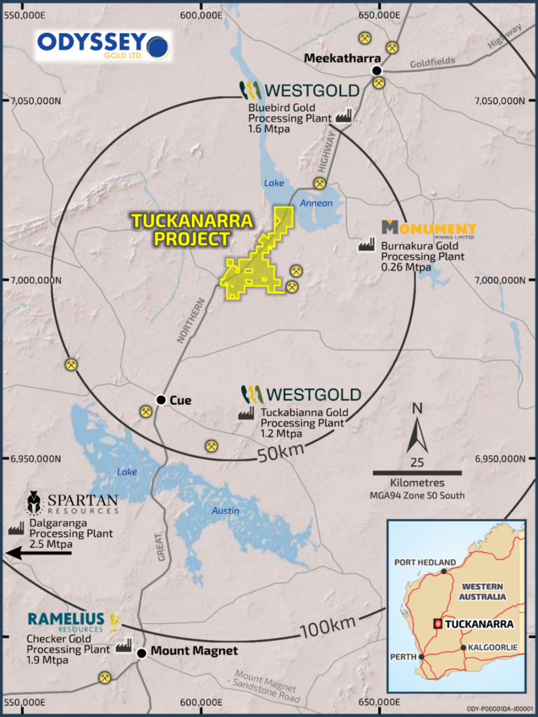 The Tuckanarra Gold Project currently has a Mineral Resource Estimate (“MRE”) of 5.14Mt @ 2.5g/t for 407,000oz (reported in accordance with the JORC Code, 2012 Edition). Shallow, open pittable, oxide gold deposits with a grade of more than 2g/t Au are increasingly rare assets in the West Australian goldfields. Approximately 311koz of Odyssey Gold’s Mineral Resources are located on existing Mining Leases and all are within two kilometres of the Great Northen Highway.